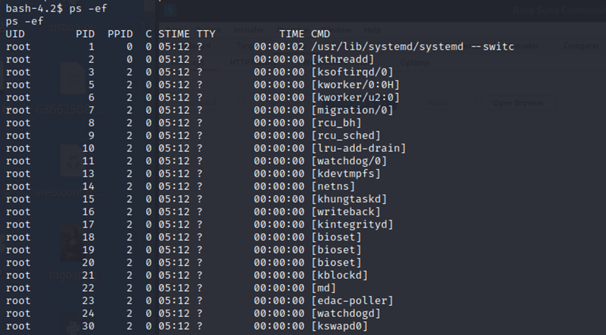 查看是否可以进行提权,用户为apache,我们没有该用户密码无法使用sudo,ps -ef中没有可以利用的进程