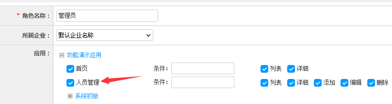 10.切换到应用管理,点击功能演示应用,进入到该应用功能列表。