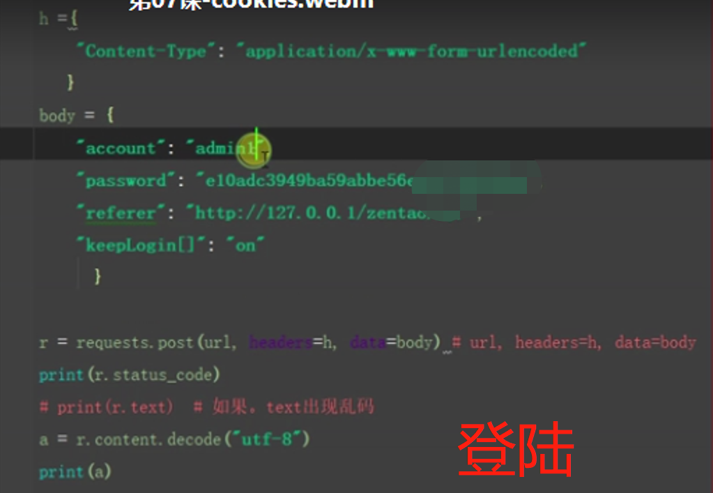 从r.headers中,用key值获取cookie,然后参考第一点中的2个说明;可以传给headers/cookies