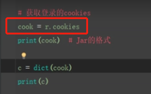 2.获取cookies:print(r.cookies) Jar格式的cookies; 可以转换成字典,dict(r.cookies)