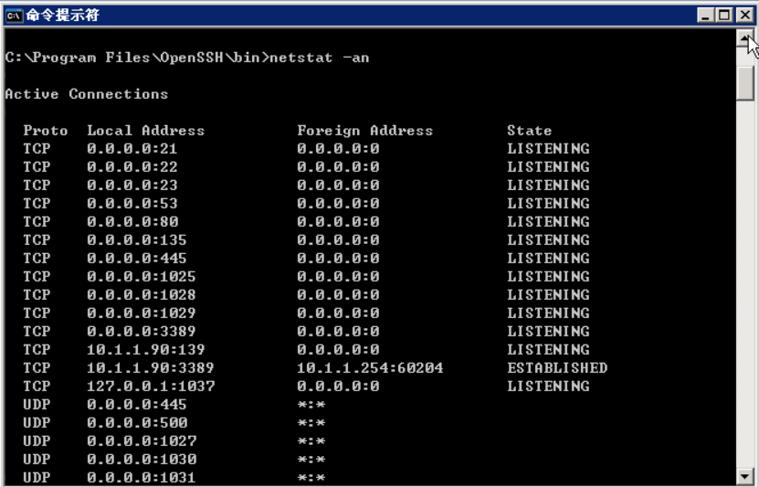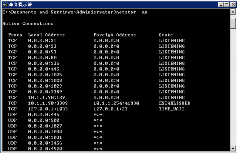 通过netstat –an查看23端口是否开放