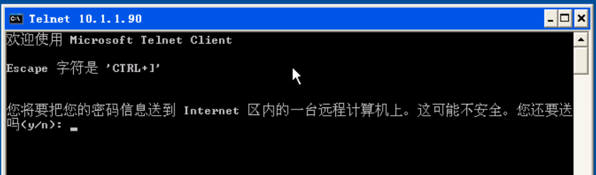 Client:到xp上,安装好Wireshark,然后Telnet server的IP,如telnet 10.1.1.90,然后就能看到欢迎界面