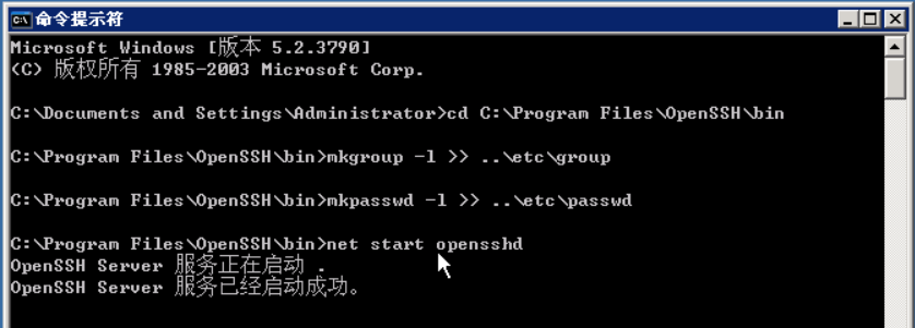 最后执行 net start opensshd,开启ssh服务。