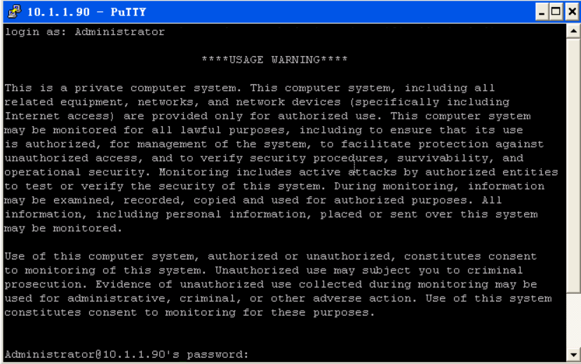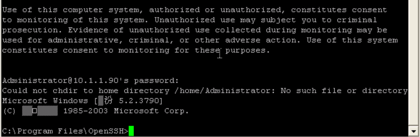 成功登录10.1.1.90,此时的操作如同在10.1.1.90上用命令提示符操作一样。