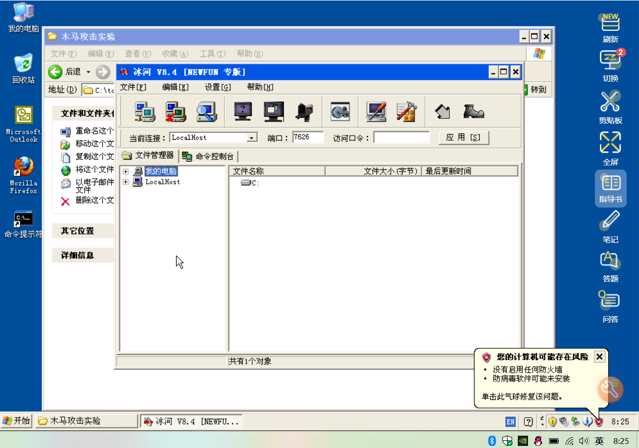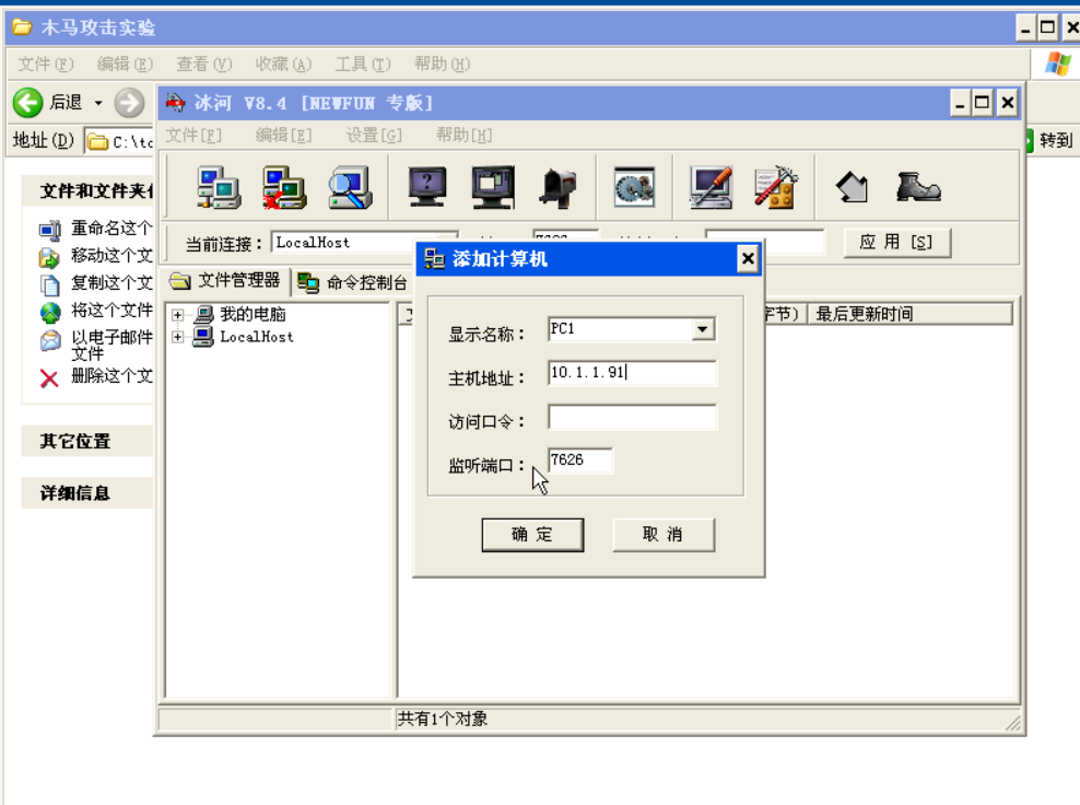 (2) 软件环境:Windows XP,冰河V8.4