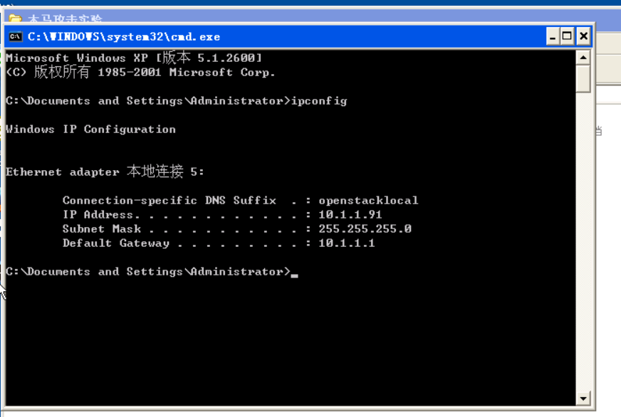 在“cmd”模式下输入“ipconfig”,如图5查询ip界面