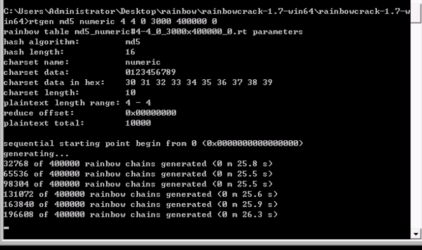 命令行下生成彩虹表格式: