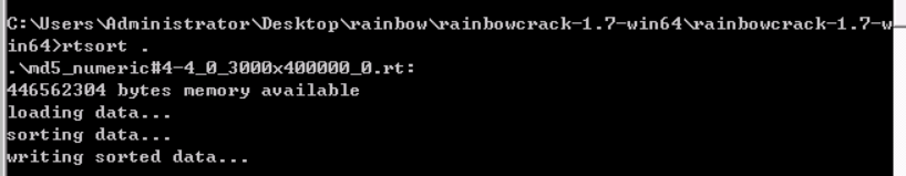 切勿中断rtsort程序; 否则被分类的彩虹表可能会被损坏。