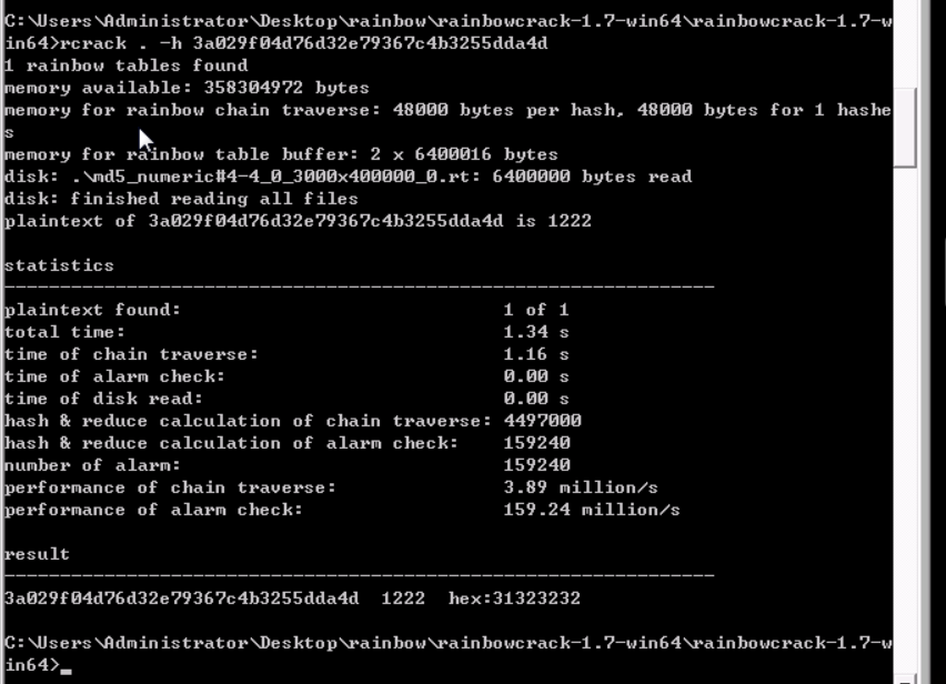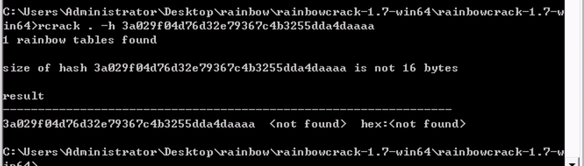 对于单个的哈希值,我们可以直接用rcrack.exe . -h hashnum来进行破解: