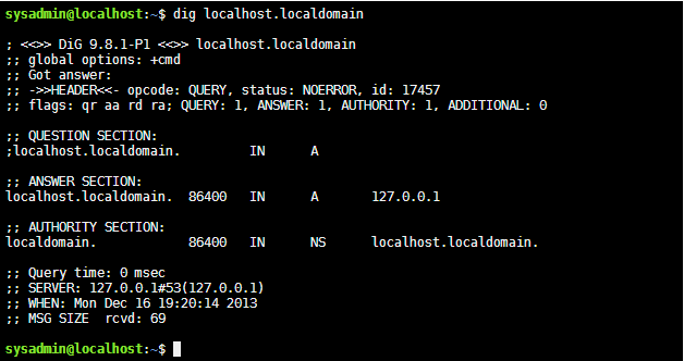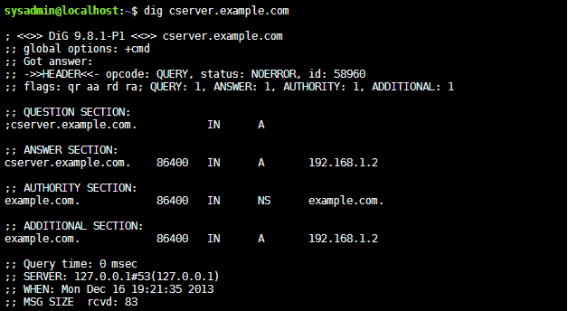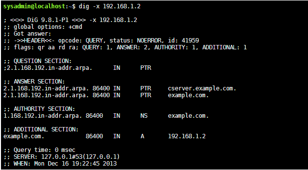 Notice the output shows that the first nameserver that was listed in the/etc/resolv.conf file is the one that responded with the answer in the ANSWER SECTION of the output.
