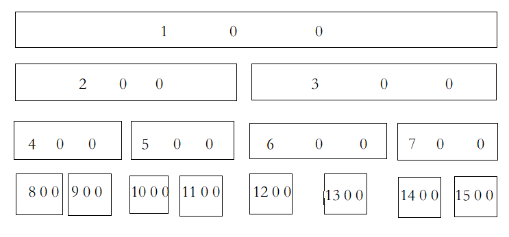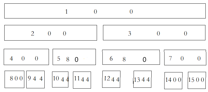 而根节点代表的区间是 \([1,n]\),它的两个子结点分别存储的是 \([1,1+n/2]\) 和 \([1+n/2 + 1, n]\)。