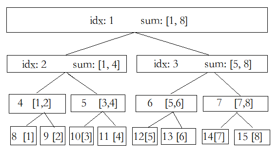 idx 代表结点编号,sum 代表的是当前区间的和。