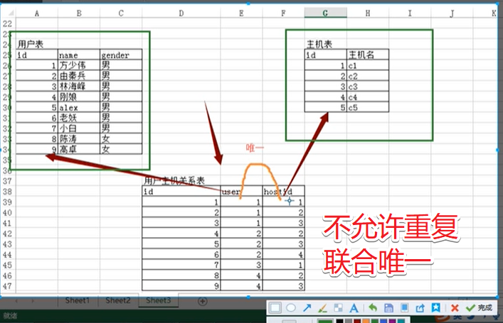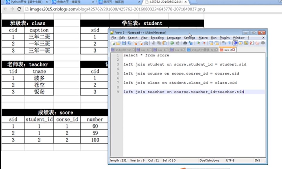 表结构:班级\学生\老师