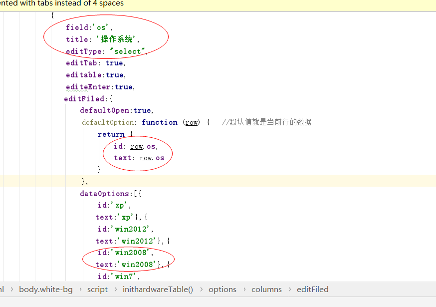 defaultOption: function (row) { //默认值就是当前行的数据