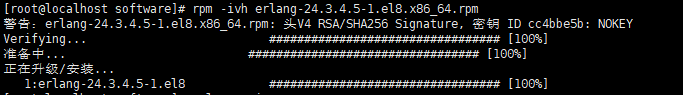 # rpm -ivh erlang-24.3.4.5-1.el8.x86_64.rpm