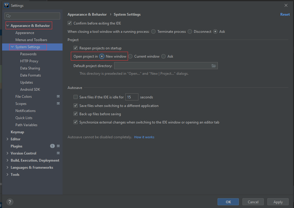 右边会出现 Open project in ,选择第一个“new window“,设置后,再打开一个项目的话会重新打开一个窗口。