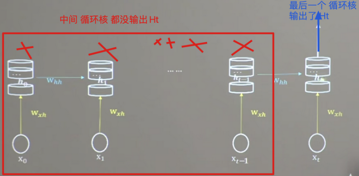 表示: 三个循环核,只在最后一个循环核输出Ht