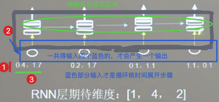 第二个维度:循环核时间的展开步数,连续四个输入 才会有一个输出。所以为 4—>1。