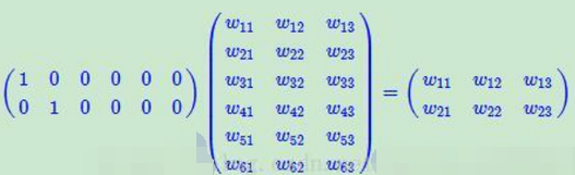 就比如说,这是一个2 x 6 的矩阵 通过 和 一个6 x 3的矩阵相乘, 它就可以变成一个2x3的矩阵。