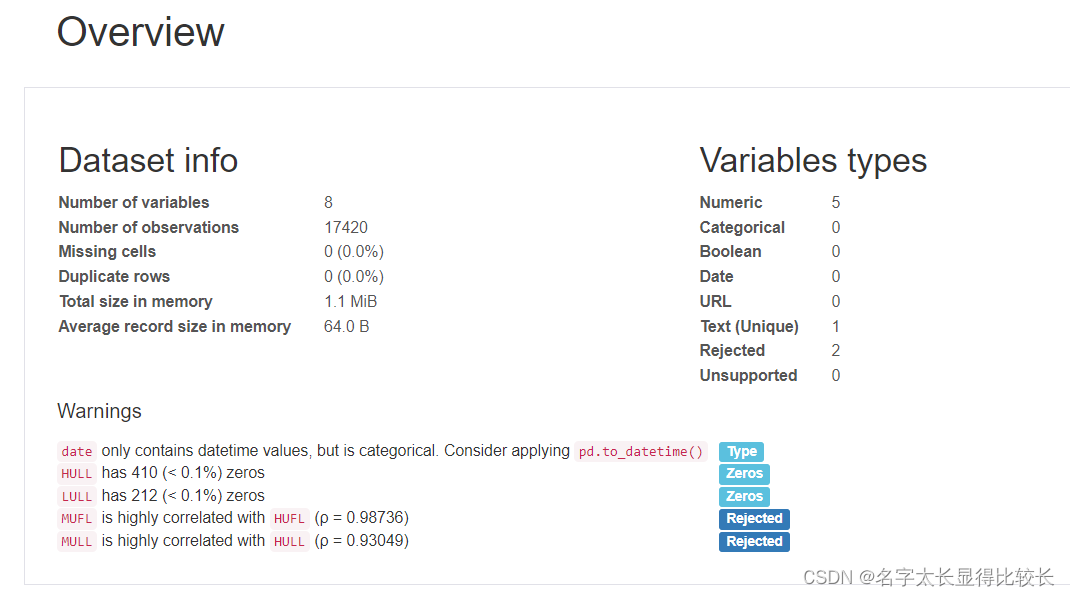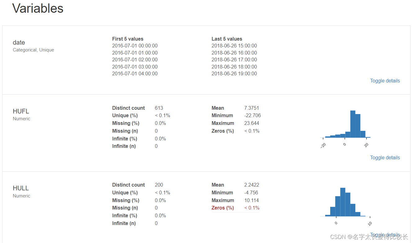 通过生成的探索性分析报告可以看出数据中的一些信息: