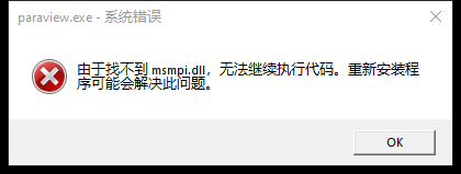 paraview 由于找不到 msmpi.dll, ,无法继续执行代码。重新安装程序可能会解决此向题