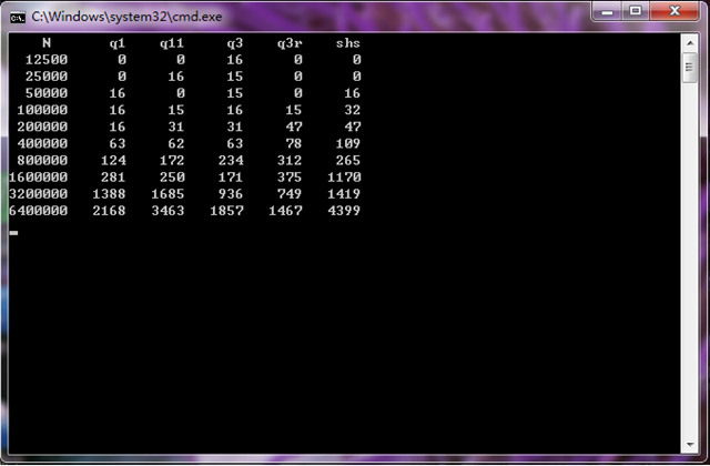 copyArray(a, b, N); c3 = doit(qsort3, a, 0, N-1);