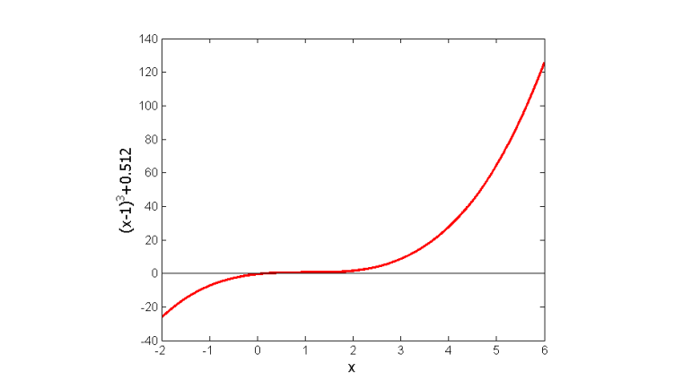 如果选择的初始猜测根的接近方程f(x)=0中函数f(x)的拐点 ,Newton-Raphson方法可能开始偏离根。然后,它可能会又收敛回到根。例如 :