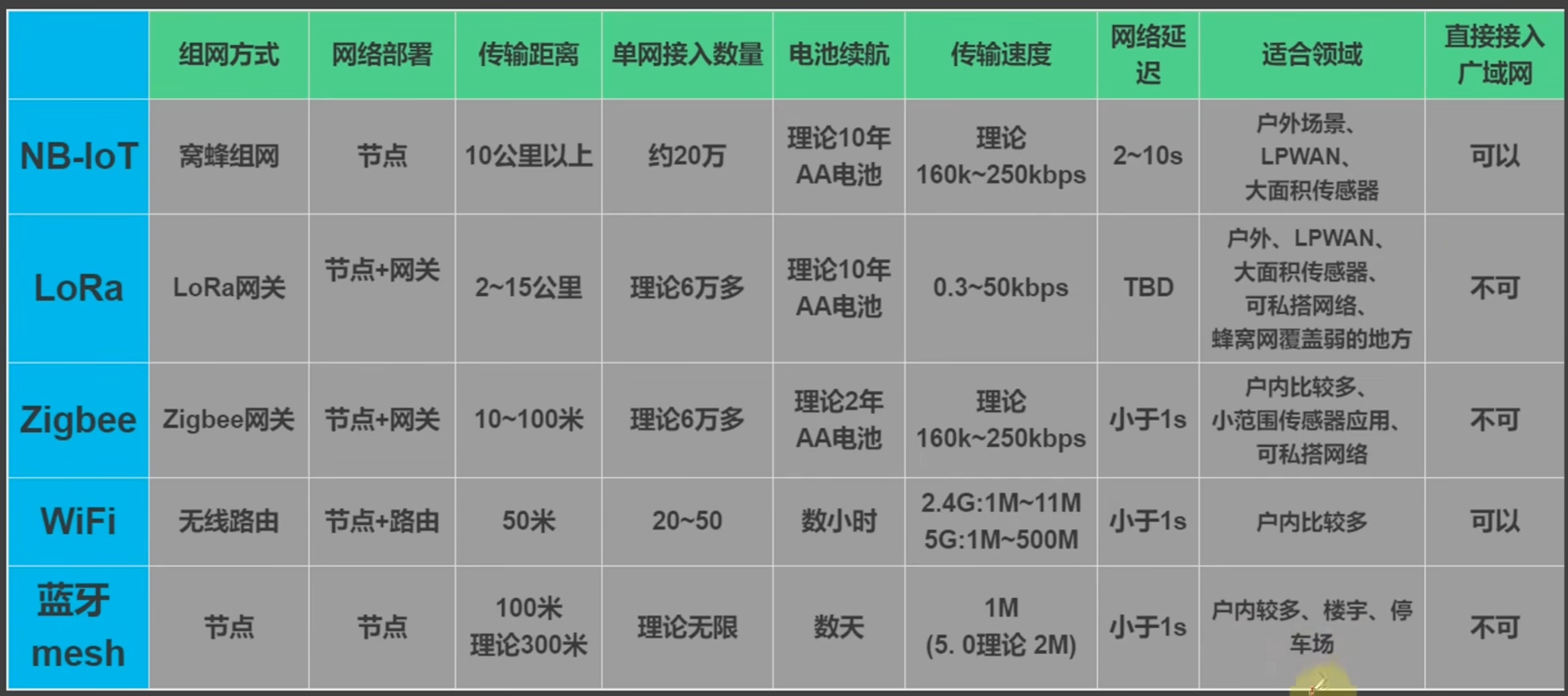 无线通信协议对比