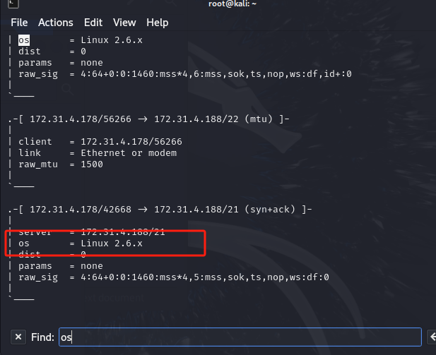 sudo p0f -r listen.pcap后得到分析文件,查找os,操作系统为Linux 2.6.x