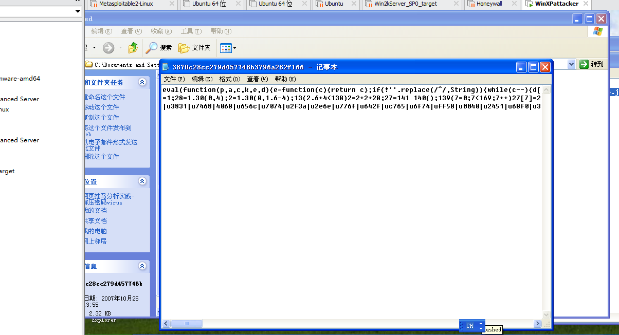 防守方对电子邮件中的挂马链接进行提取、解混淆分析、尝试恢复出渗透代码的原始形态,并分析这些渗透代码都是攻击哪些Web浏览端软件的哪些安全漏洞。