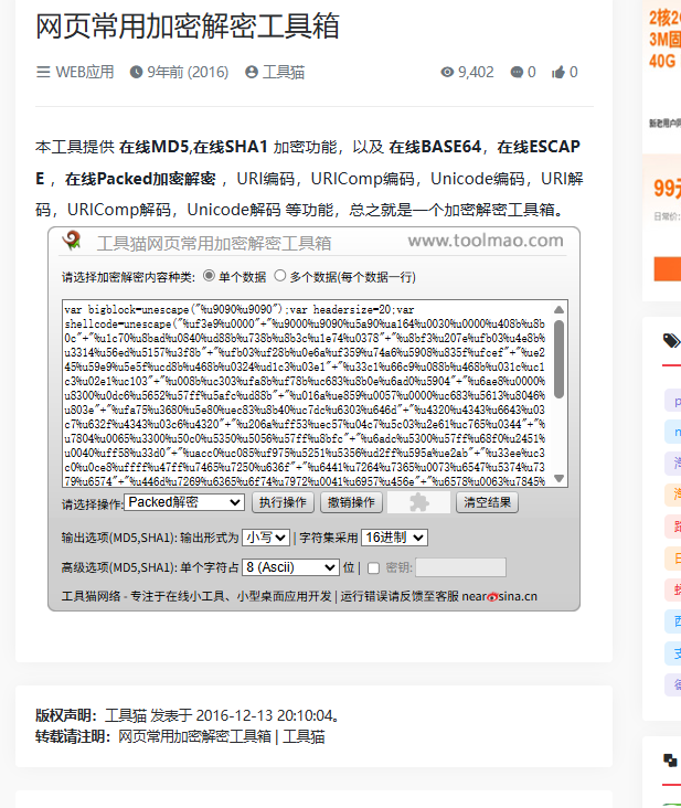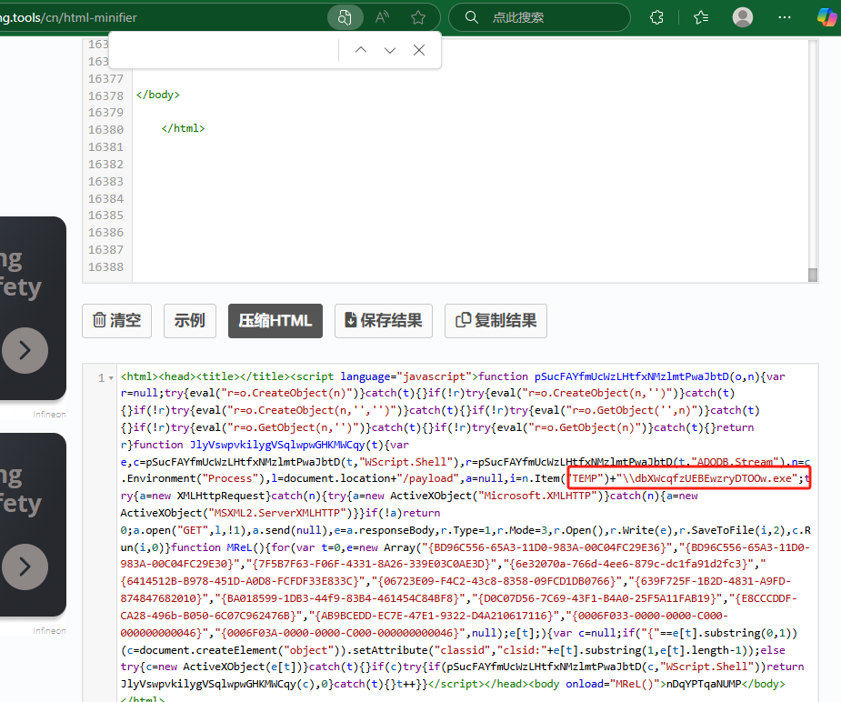 在靶机上登录该网址后右键点击查看源代码,使用html在线解压缩工具得到相关的代码