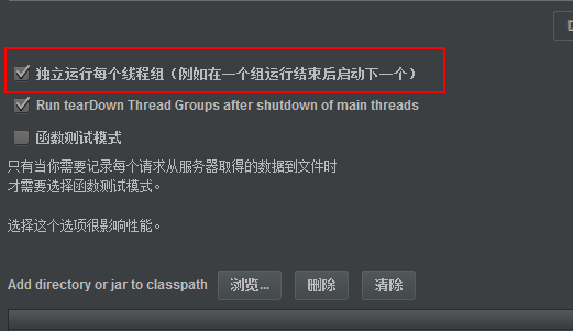 避免线程组间用例执行顺序杂乱无章,在测试计划中勾选“独立运行每个线程组”: