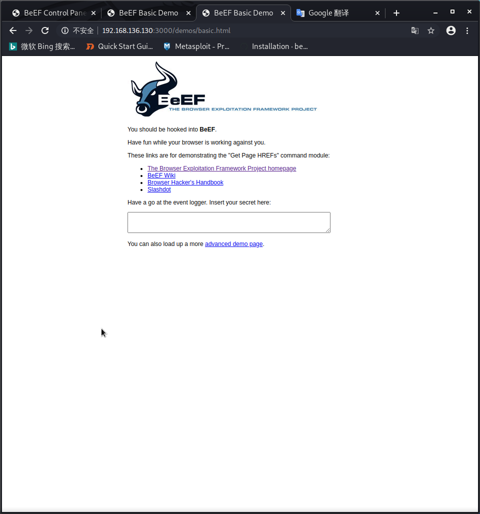 默认安装BeEF,命令是beef-xss,如果提示命令不存在,就自己装一个