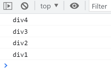 <div @click.capture="one"> 我是div1 <div @click.capture="two"> 我是div2 <div @click.capture="three"> 我是div3 <div @click.capture="four"> 我是div4 </div> </div> </div> </div>