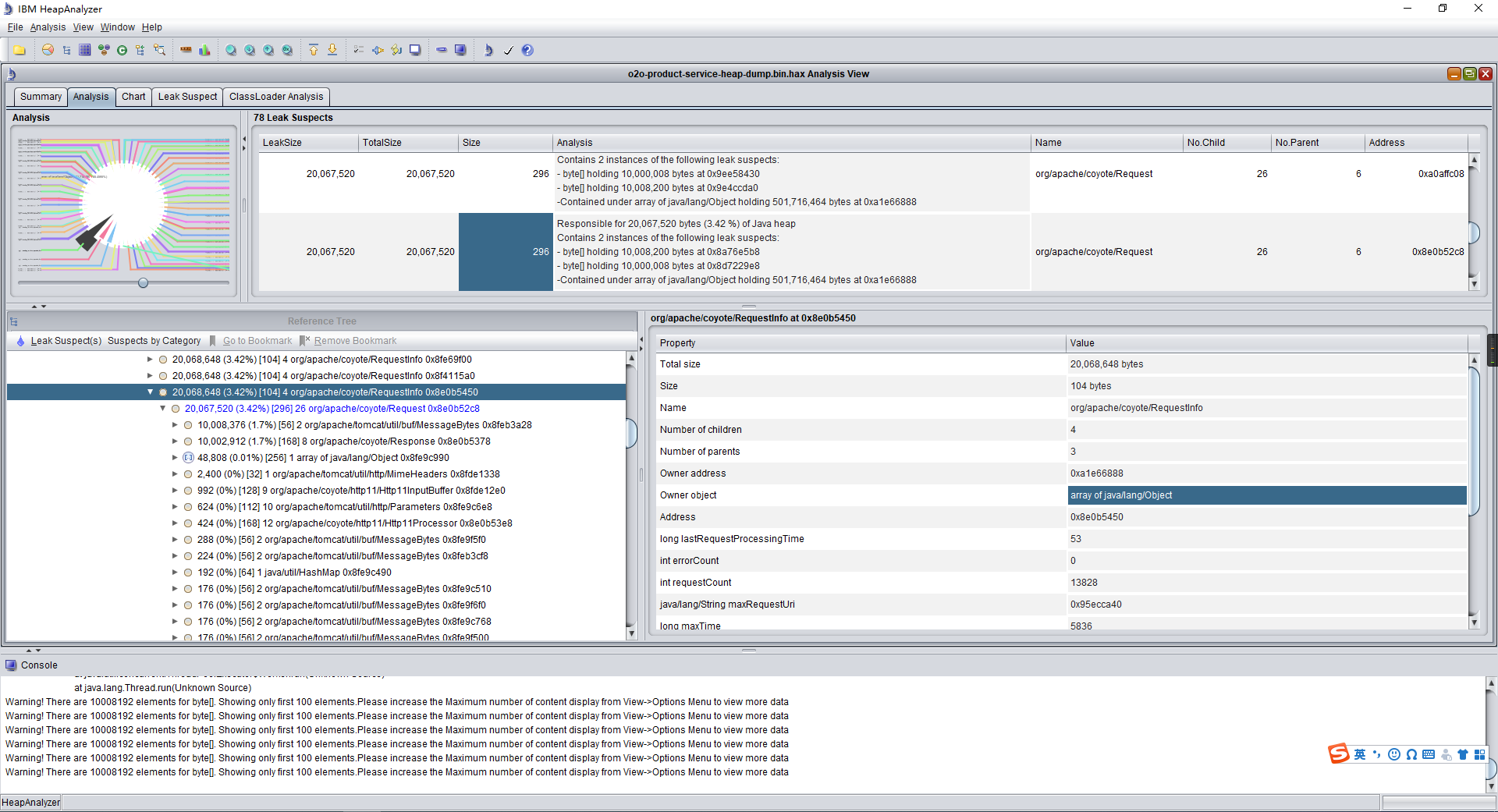 之前只是看到内存中存在大容量的byte[]对象,并没有看到其中的内容,因此改用MAT继续查看堆dump,这次看到这些byte[]中存储的是请求相关的信息