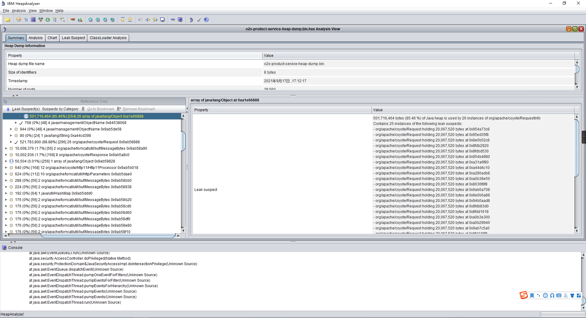 分析dump 文件找到占用最多内存的对象和实体类: