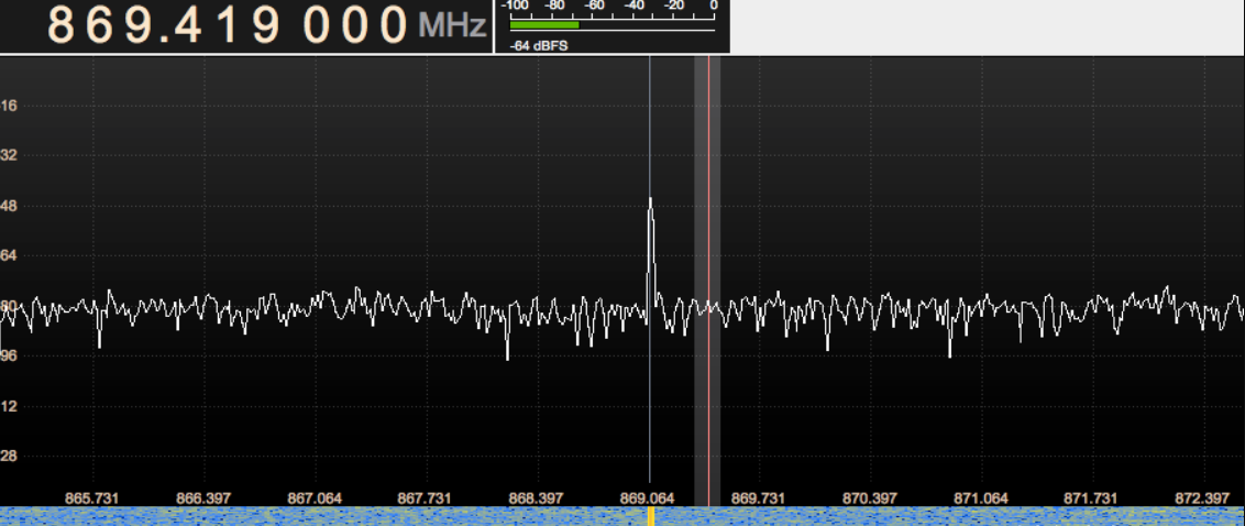 遥控、传感器与网关通信的频率为868MHZ,如下图所示: