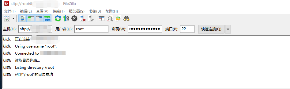 1.打开FileZilla 输入centos 地址、账号、密码,端口号(默认是22) 连接