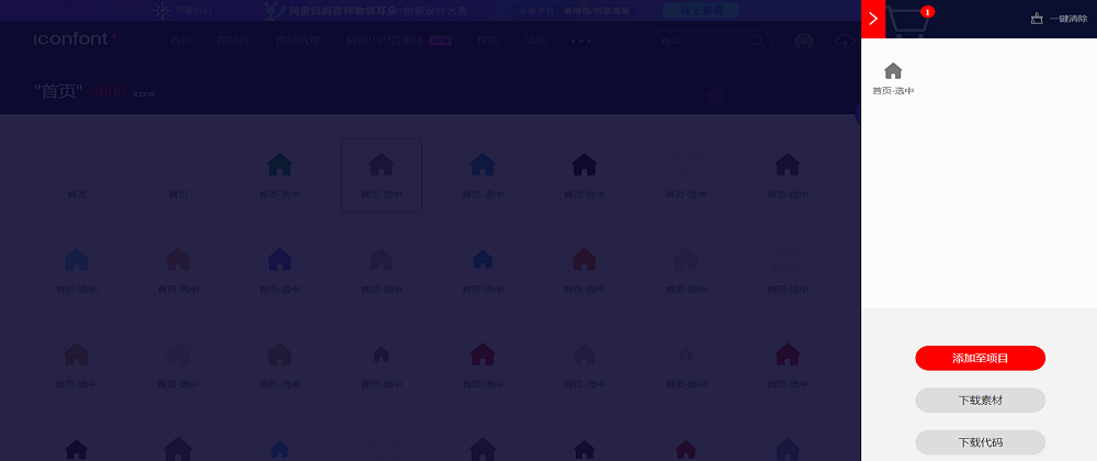 在页面输入要搜索的图标