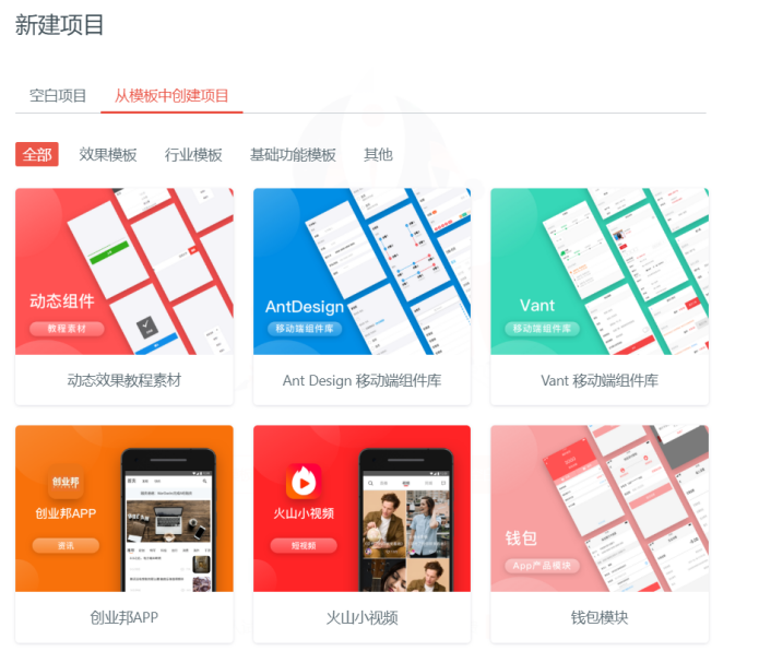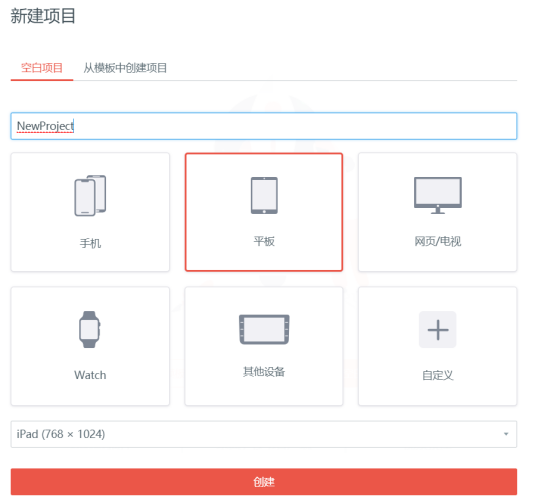 首先进行注册登录后,我们来到首页创建项目的页面,如下: