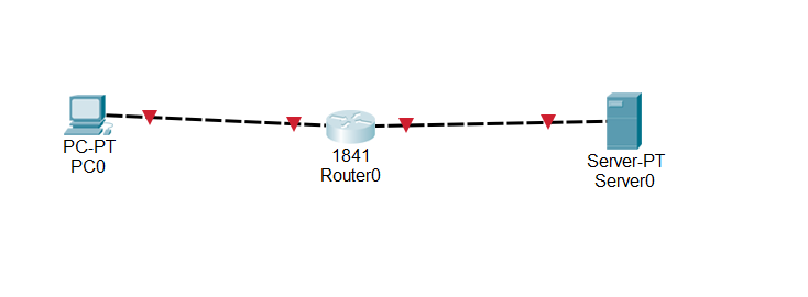 将一个pc,一个server和一个路由器连接形成拓扑结构:
