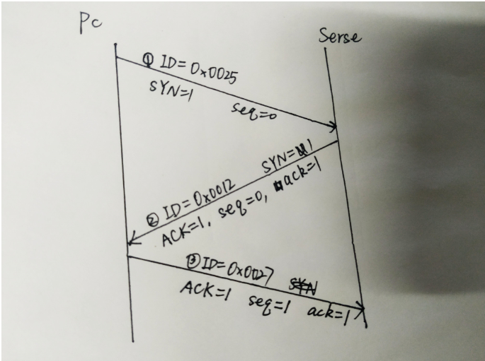 服务端收到连接请求,同意连接,向客户端发送确认。确认报文中SYN和ACK为1,确认号ack=1(x+1),同时为自己选择一个初始序号seq=0(y);