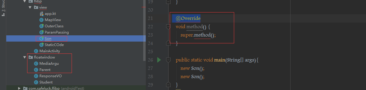 @Override注解可以避免因权限控制可见范围导致的覆写失败。如果Parent和Son处于不同包下,他们的method方法是无权限控制修饰符,默认包内可见。Parent的method的方法在Son中是不可见的。所以son的method方法是一个新方法,如果加上