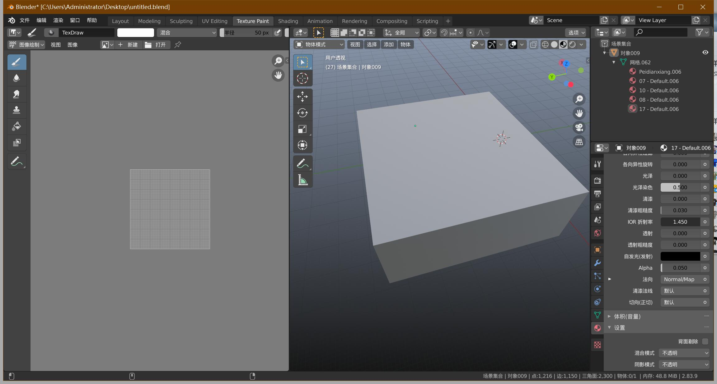 但是经过此步骤调整后导出的模型放入测试网址中时会发现模型的 Opacity 属性值依然为 1.00 。