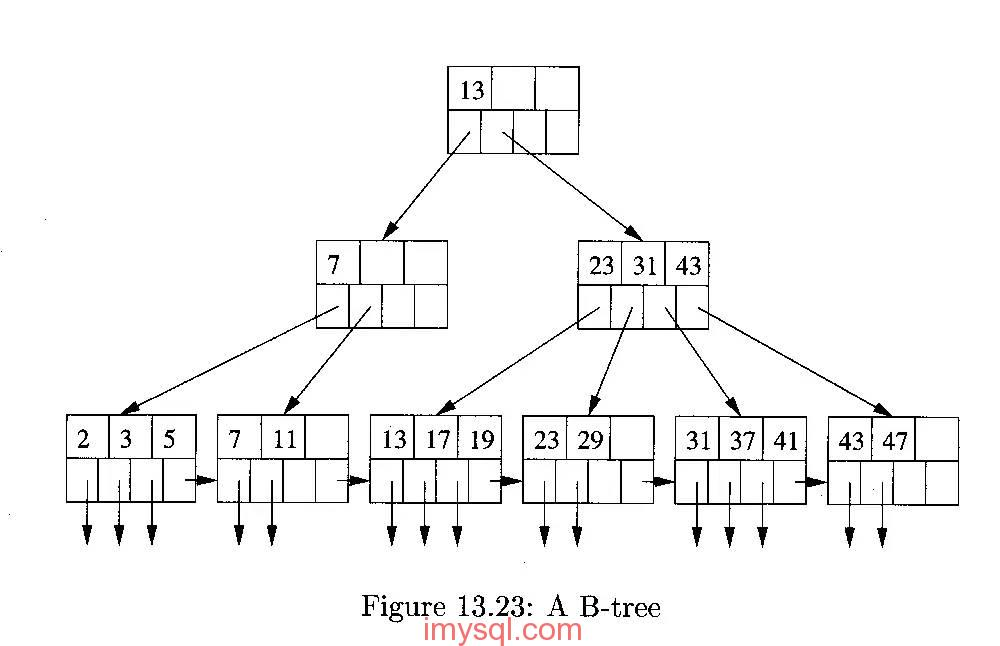 但是仔细一看会发现,比对是在内存中完成中,不涉及到磁盘IO,耗时可以忽略不计。另外B树种一个节点中可以存放很多的key(个数由树阶决定)。