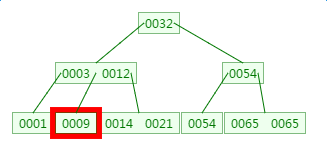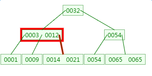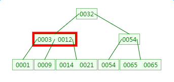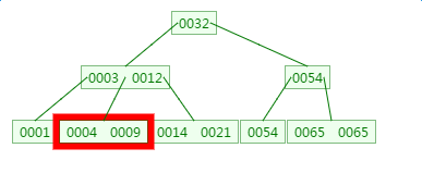 不能加在0003 0012中间是因为0009比0004大,不能作为0004 的左字节点;同样0004不能加在0001中是因为0001 0004都是00003的左子节点,里边元素都要比0003小;不能新建一个叶子节点是因为现在叶子节点个数已经是3个,不能再新增了