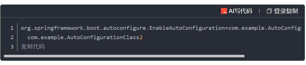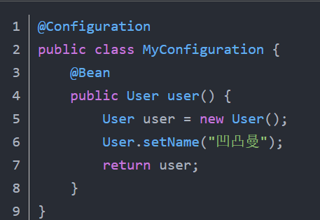 导入一个或多个配置类L:可以使用@Import导入其他使用了@Configuration注解的配置类,例如@Import(MyConfig.class)将会导入名为MyConfig的配置类