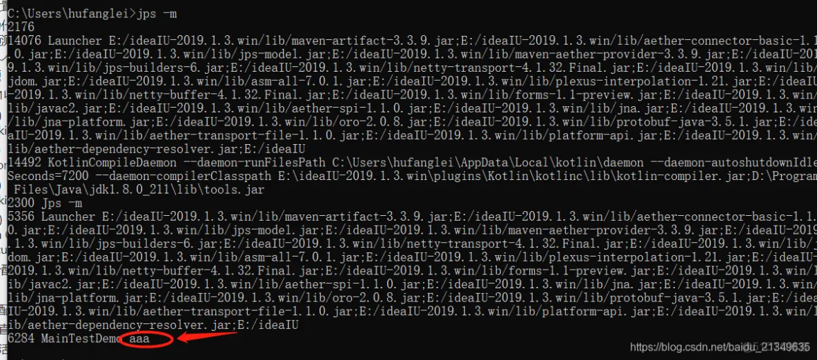 运行后在命令行输入jps,打印出当前所有运行的java进程