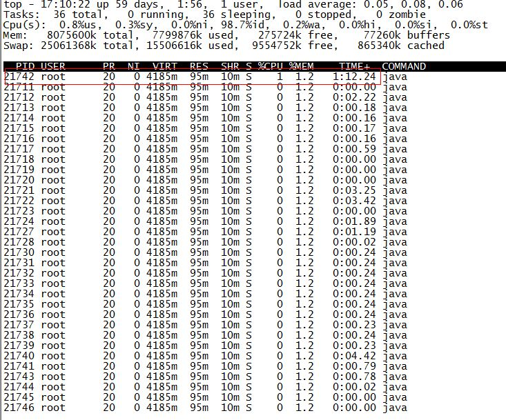 root@ubuntu:/# jmap -histo:live 21711 | more num #instances #bytes class name---------------------------------------------- 1: 38445 5597736 <constMethodKlass> 2: 38445 5237288 <methodKlass> 3: 3500 3749504 <constantPoolKlass> 4: 60858 3242600 <symbolKlass> 5: 3500 2715264 <instanceKlassKlass> 6: 2796 2131424 <constantPoolCacheKlass> 7: 5543 1317400 [I 8: 13714 1010768 [C 9: 4752 1003344 [B 10: 1225 639656 <methodDataKlass> 11: 14194 454208 java.lang.String 12: 3809 396136 java.lang.Class 13: 4979 311952 [S 14: 5598 287064 [[I 15: 3028 266464 java.lang.reflect.Method 16: 280 163520 <objArrayKlassKlass> 17: 4355 139360 java.util.HashMap$Entry 18: 1869 138568 [Ljava.util.HashMap$Entry; 19: 2443 97720 java.util.LinkedHashMap$Entry 20: 2072 82880 java.lang.ref.SoftReference 21: 1807 71528 [Ljava.lang.Object; 22: 2206 70592 java.lang.ref.WeakReference 23: 934 52304 java.util.LinkedHashMap 24: 871 48776 java.beans.MethodDescriptor 25: 1442 46144 java.util.concurrent.ConcurrentHashMap$HashEntry 26: 804 38592 java.util.HashMap 27: 948 37920 java.util.concurrent.ConcurrentHashMap$Segment 28: 1621 35696 [Ljava.lang.Class; 29: 1313 34880 [Ljava.lang.String; 30: 1396 33504 java.util.LinkedList$Entry 31: 462 33264 java.lang.reflect.Field 32: 1024 32768 java.util.Hashtable$Entry 33: 948 31440 [Ljava.util.concurrent.ConcurrentHashMap$HashEntry;