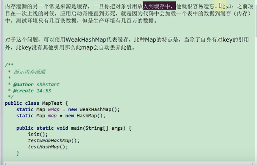 - 使用java.lang.ref包的弱引用WeakReference,下次垃圾收集器工作时被回收。